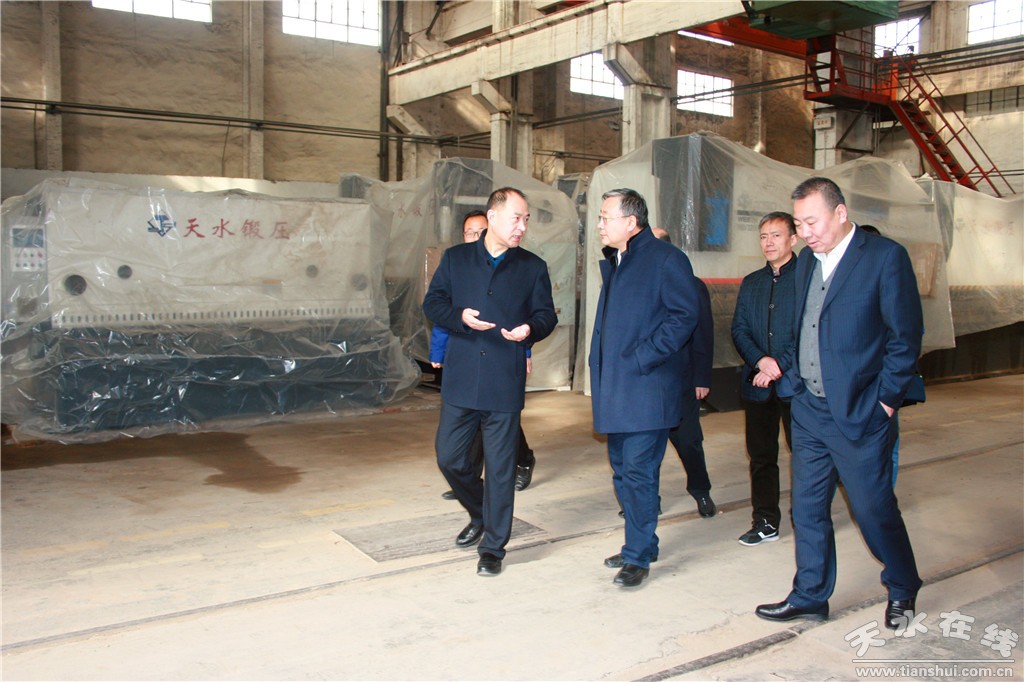 3月15日上午,甘肅省工信廳副廳長王海峰,裝備產(chǎn)業(yè)處處長鞏朝陽等一行,在天水市工信局局長何曉斌、副局長辛國俊、裝備制造科科長唐愛玲等的陪同下,深入到天水鍛壓機(jī)床(集團(tuán))有限公司調(diào)研生產(chǎn)經(jīng)營、固定資產(chǎn)投資、項(xiàng)目建設(shè)、技術(shù)創(chuàng)新、兩化融合、協(xié)同制造、智能制造等工作,并深入了解天水鍛壓近期發(fā)展情況和存在的困難及問題,積極助力天水鍛壓實(shí)現(xiàn)生產(chǎn)經(jīng)營“開門紅”。