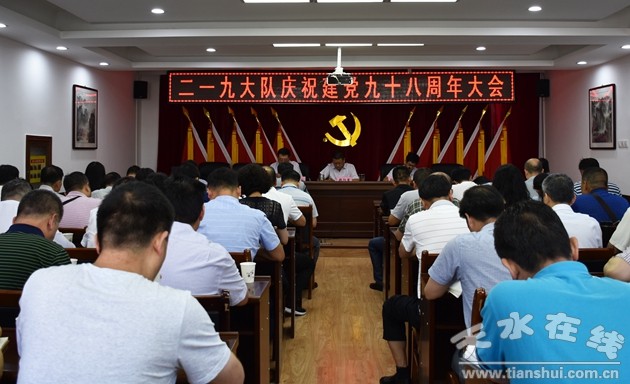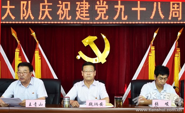 7月1日上午八時(shí),在莊嚴(yán)的國歌聲中,慶祝建黨九十八周年大會(huì)在辦公室五樓會(huì)議室隆重開幕。機(jī)關(guān)全體黨員、新黨員、各黨支部書記共七十余人參加會(huì)議,會(huì)議由大隊(duì)黨委副書記、紀(jì)委書記王青山同志主持。