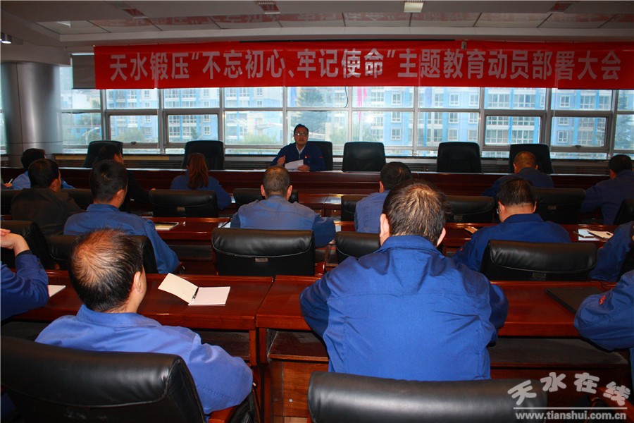 天水鍛壓機床(集團)有限公司黨委在“不忘初心、牢記使命”主題教育中,始終把學習教育、調(diào)查研究、檢視問題、整改落實貫徹到主題教育全過程。做到了主題教育與生產(chǎn)經(jīng)營有效結合,達到了學習教育與生產(chǎn)經(jīng)營的融合、調(diào)查調(diào)研與工作實際融合、檢視問題與重點工作融合、整改落實與難點工作整合,并取得了一定效果。同時按照相關要求積極扎實推進主題教育工作。