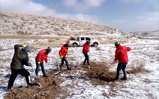 正值寒冬,工區(qū)氣候惡劣,凍土層較厚,嚴(yán)重影響發(fā)射端和接收端電極接地,極大增加了施工難度,不僅需要消耗更多人力物力,惡劣的氣候環(huán)境也縮短了有效施工時(shí)長(zhǎng),嚴(yán)重影響施工進(jìn)度。景泰工區(qū)本就地形險(xiǎn)峻,加上現(xiàn)在正處寒冬,氣候嚴(yán)寒凜冽,施工人員經(jīng)常觸摸著的冰冷的巖體攀爬,在廣袤的戈壁灘上經(jīng)常遭受寒風(fēng)和沙塵的侵襲。在飄落漫天飛雪的戈壁灘和大山中,普查隊(duì)技術(shù)人員的一抹紅色身影儼然成為了一道亮麗的風(fēng)景線,展現(xiàn)了地質(zhì)人不怕困難、不懼嚴(yán)寒、堅(jiān)守崗位的奉獻(xiàn)精神。