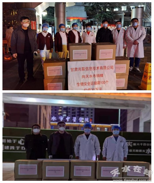 11月4日,在得知我市抗疫一線醫(yī)療設(shè)施設(shè)備尤其是生物安全運(yùn)輸設(shè)備極度匱乏這一緊急情況后,甘肅共聯(lián)信息技術(shù)有限公司再次慷慨解囊、奉獻(xiàn)愛心,向天水市醫(yī)療衛(wèi)生機(jī)構(gòu)和有關(guān)縣區(qū)核酸檢測(cè)點(diǎn),捐贈(zèng)價(jià)值30余萬元的生物安全運(yùn)輸箱100套,連夜組織力量和車輛配送到抗疫任務(wù)較重的天水市第一人民醫(yī)院、天水市中醫(yī)醫(yī)院以及秦州區(qū)、麥積區(qū)、甘谷縣、武山縣的核酸檢測(cè)工作一線。