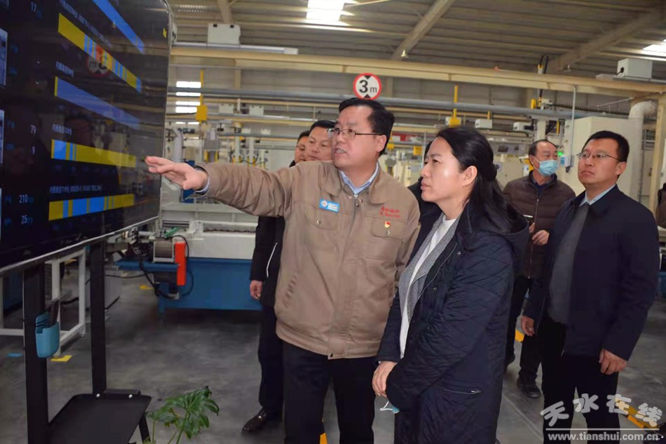 李菊霞一行先后參觀了該公司數(shù)字展廳、生產(chǎn)處MES信息化智能終端大屏、能源管理中心智慧能源控制大屏以及三分廠生產(chǎn)現(xiàn)場(chǎng),實(shí)地了解了該企業(yè)產(chǎn)品生產(chǎn)加工流程、新型數(shù)控生產(chǎn)設(shè)備連線、AGV物料配送等一系列工廠信息化建設(shè)情況并進(jìn)行座談。