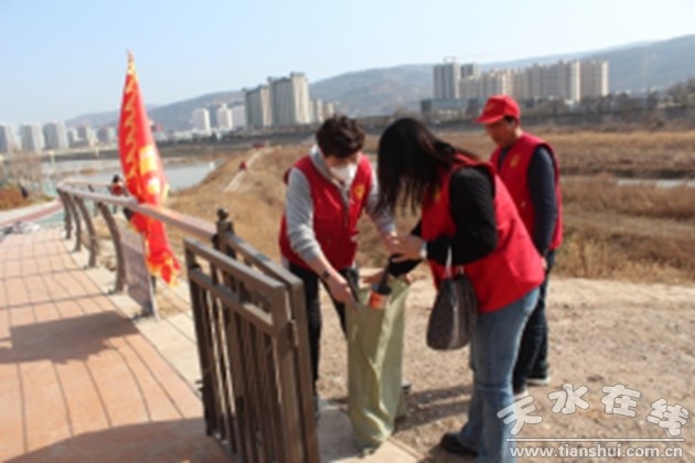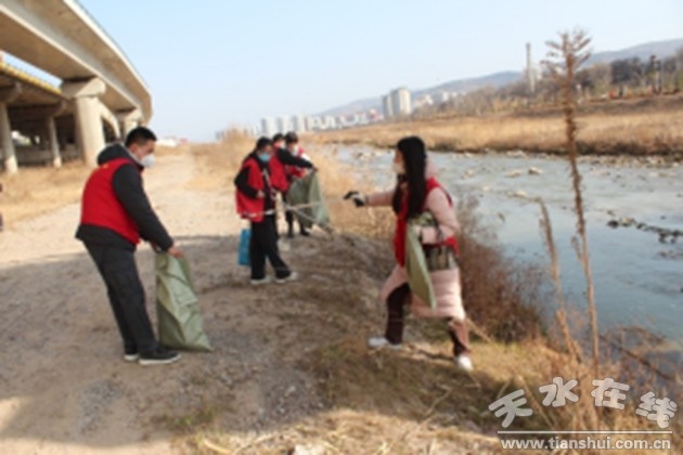 清除公園綠地枯枝敗葉、清理河道內(nèi)生活垃圾、清掃人行道路面、疏通小區(qū)排洪渠、對管轄小區(qū)內(nèi)孤寡老人和殘疾人家庭開展上門服務(wù)……3月3日,在藉河二期景觀沿線、成紀(jì)大道道路兩側(cè)、和諧家園、天河家園等多個場所出現(xiàn)了一抹抹靚麗的“城投志愿紅”。