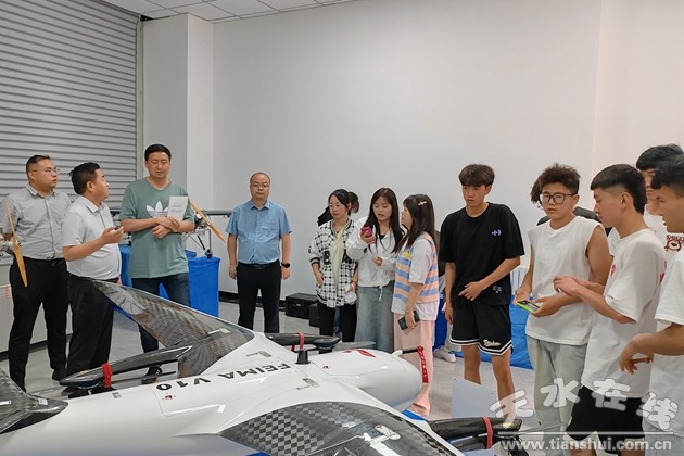 最后,王維力帶領(lǐng)學(xué)生到普查隊(duì)航測(cè)遙感院各作業(yè)室進(jìn)行了交流學(xué)習(xí),并參觀了該隊(duì)地球物理勘查科研基地辦公區(qū)域和設(shè)備管理庫,詳細(xì)了解了該隊(duì)航測(cè)無人機(jī)、地震勘探等設(shè)備。