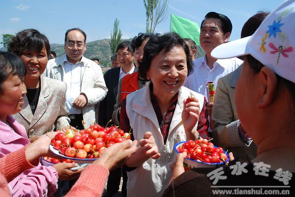 (2009年5月22日下午,秦州區(qū)太京鎮(zhèn)鄭家磨行政村馬家堯自然村村民給考察團(tuán)送來了大櫻桃)