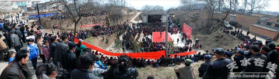 來自中梁鄉(xiāng)草胡村(市委書記馬世忠的聯(lián)系村)、李家莊村(市人大常委會主任柴金祥的聯(lián)系村)、劉家河村(市委副書記、市長王銳的聯(lián)系村)、楊家山村(市委副書記、市政協(xié)主席楊維俊的聯(lián)系村)、唐河村(市委常委、紀委書記李美華的聯(lián)系村)、向陽村(市委常委、組織部長王光慶的聯(lián)系村)、馬莊村(市委常委、常務副市長郭奇若的聯(lián)系村)、龍鳳村(市委常委、秘書長蔣曉強的聯(lián)系村)、金李村(市委常委、政法委書記趙衛(wèi)東的聯(lián)系村)、何家廟村(市委常委、宣傳部長彭鴻嘉的聯(lián)系村)、趙家河村(天水軍分區(qū)政委李治林的聯(lián)系村)、馬周村(市人大常委會副主任韓一兵的聯(lián)系村)、紅衛(wèi)村(市人大常委會副主任蕭菡的聯(lián)系村)、茹家灣村(秦州區(qū)政協(xié)主席宋丕林的聯(lián)系村)、馬窯村(秦州區(qū)法院院長王建明的聯(lián)系村)和三灣村的5千多村民觀看了演出。
