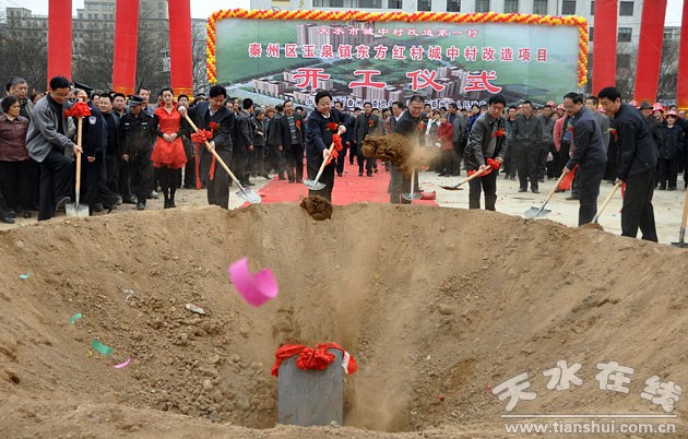 3月30日,天水市城中村改造第一村——秦州區(qū)玉泉鎮(zhèn)東方紅村城中村改造項(xiàng)目開工奠基,標(biāo)志著天水市城中村改造工程的全面啟動(dòng)。