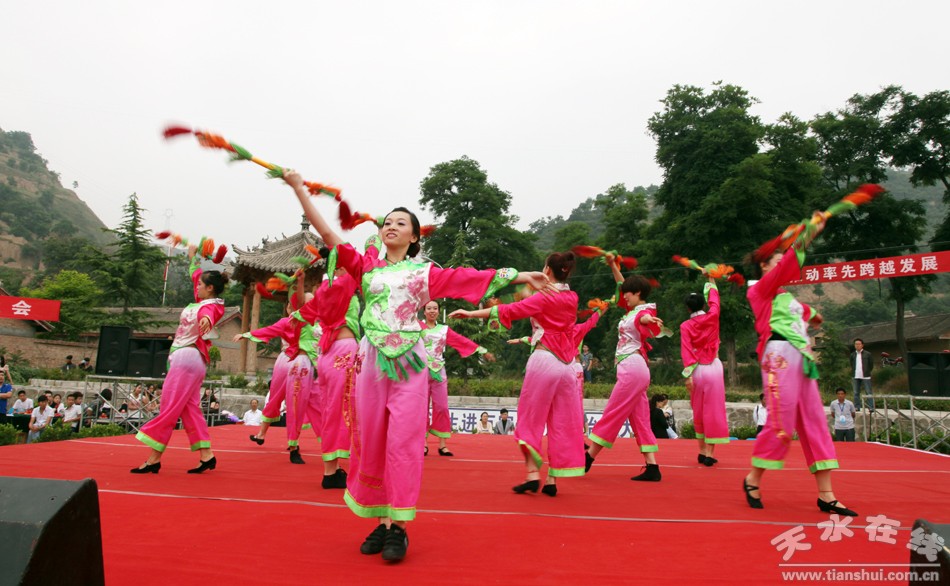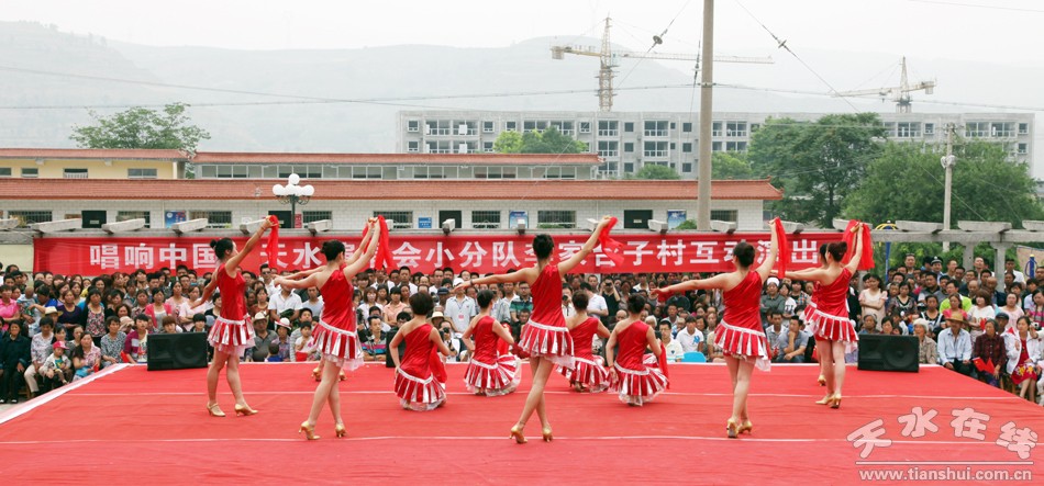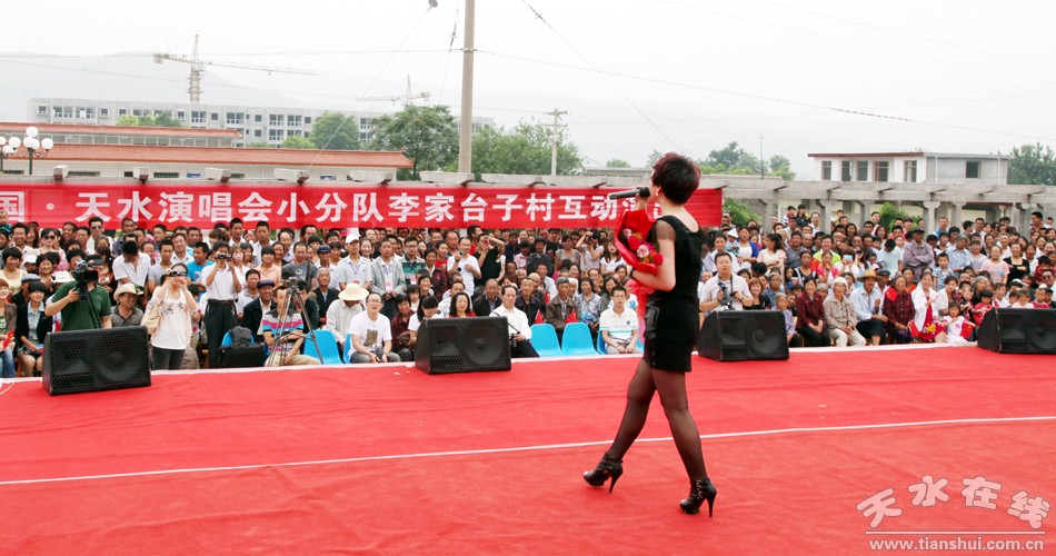 一大早,附近四里八鄉(xiāng)的老鄉(xiāng)們不約而同地聚集到李家臺(tái)子村文化小廣場(chǎng),為了采摘銷售櫻桃已經(jīng)忙了近兩個(gè)月的農(nóng)民都期待著在這里品味一道由天水當(dāng)?shù)匮輪T以及唱響中國(guó)的藝術(shù)家們共同烹制的文化大餐。上午9時(shí)許,來(lái)自總政歌舞團(tuán)青年演員喬治和南京解放軍藝術(shù)團(tuán)的青年歌手文春芬把一首首耳熟能詳?shù)慕?jīng)典歌曲奉獻(xiàn)給了觀眾;李家臺(tái)子演出小分隊(duì)編排的十幾個(gè)節(jié)目當(dāng)中,有傳統(tǒng)的秦腔曲目,也有器樂(lè)演奏,更有熱情的舞蹈。演員與觀眾在現(xiàn)場(chǎng)精彩互動(dòng),氣氛熱烈。激昂豪邁的歌聲贏得了現(xiàn)場(chǎng)觀眾的熱烈掌聲。