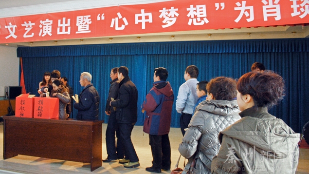 為幫助肖琰母子籌措醫(yī)藥費(fèi),重拾生活的信心,慶路社區(qū)于今日舉辦了“雙聯(lián)”文藝演出暨“心中夢(mèng)想”為肖琰捐款儀式。演出現(xiàn)場(chǎng),市區(qū)有關(guān)單位,轄區(qū)友好單位,社會(huì)各界愛心人士,黨員群眾共為肖琰捐款35641元。我市知名書畫家楊蔭農(nóng)、翟東祥等還為社區(qū)增送了春聯(lián)和書畫作品,以表心意。