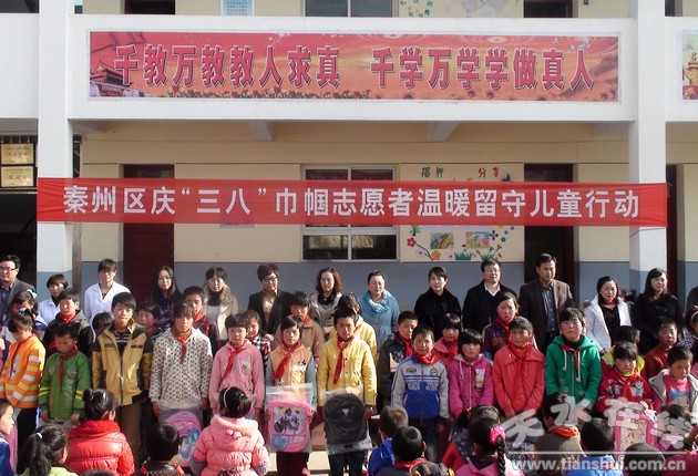 3月4日下午,秦州區(qū)婦聯(lián)組織區(qū)委機關(guān)、教體局、人社局、眼科醫(yī)院、友誼賓館等單位的巾幗志愿者到藉口中心小學(xué)開展了“秦州區(qū)慶‘三八’巾幗志愿者溫暖留守兒童行動”。