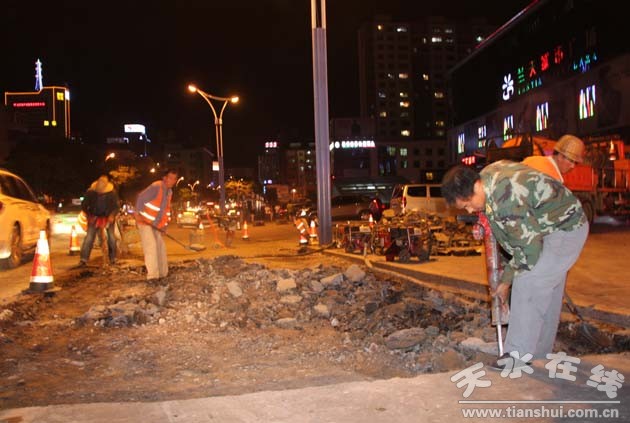 夜間搶修大眾路等路段破損道路