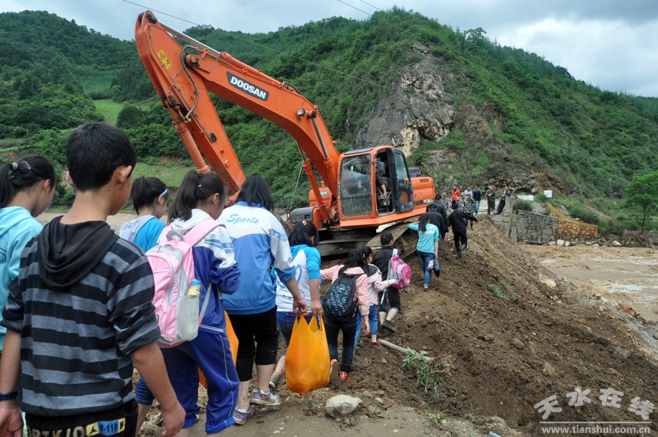 21日上午8時,負(fù)責(zé)打通生命線的區(qū)水務(wù)局調(diào)來了挖掘機(jī)和鏟車,開始了打通通往長河村唯一一條道路的搶修工作,聽到消息的村民便早早趕來等待著,好早點(diǎn)過去。一鏟、兩鏟……經(jīng)過6小時的奮力搶修,道路一點(diǎn)一點(diǎn)的被泥沙墊了起來,急不迫待群眾只能停下作業(yè)的鏟車,讓其一批一批匆匆通過。