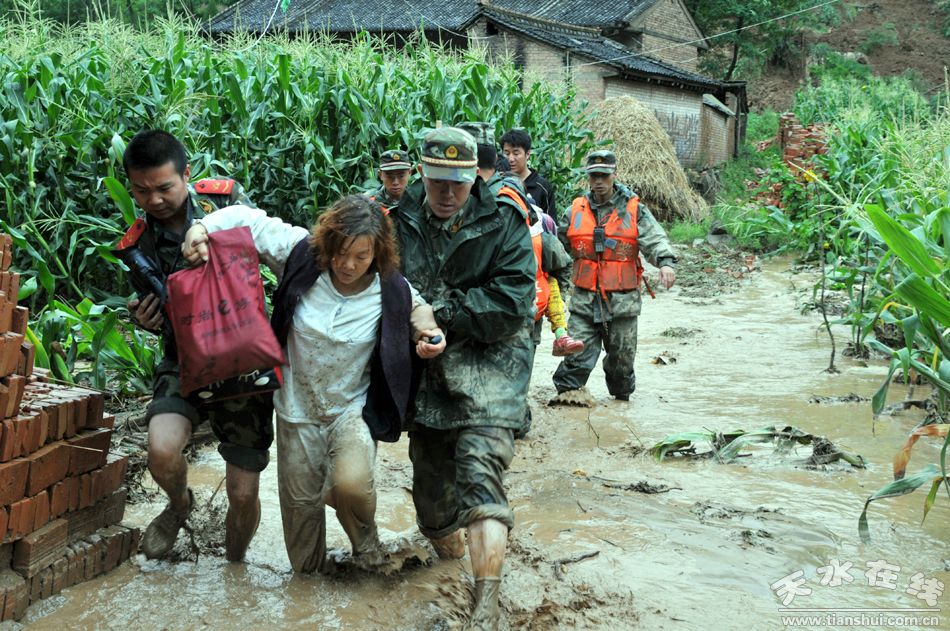 7月25日凌晨5時許,一場強(qiáng)降雨突然來襲,使得地處天水市秦州區(qū)南部嘉陵江上游的白嘉、北峪、南峪河瞬間變成了暴怒的“巨龍”,沖塌了房屋、淹沒了農(nóng)田、沖毀了橋梁涵洞……泥石流使昔日山清水秀的娘娘壩鎮(zhèn)瞬間支離破碎,28個行政村只有4個可以與外界聯(lián)系上,災(zāi)情十萬火急。