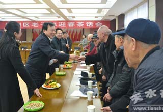 。ㄇ刂輩^(qū)外宣辦)值此羊年春節(jié)即將到來之際,2月14日上午,秦州區(qū)舉行老干部迎春茶話會,來自全區(qū)的廣大老干部歡聚一堂,共賀新春,共話發(fā)展。