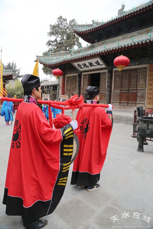 2月26日(農(nóng)歷正月初八日)下午,秦州區(qū)玉泉觀舉行“越廟”儀式。圖為隊伍抵達伏羲廟太極殿前。