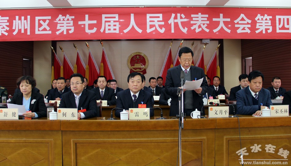 文月平在閉幕大會上講話。他說,本次會議期間,各位代表牢記使命、不負重托,以高度的政治責任感和主人翁精神,積極履行憲法和法律賦予的職責,暢所欲言,建言獻策,共商適應經(jīng)濟發(fā)展新常態(tài),推進秦州經(jīng)濟社會轉(zhuǎn)型升級科學發(fā)展大計,體現(xiàn)了敢于擔當、高度負責的使命意識,展示了奮發(fā)有為、昂揚向上的精神風貌。會議審議批準的政府工作報告和其他各項報告,全面貫徹了習近平總書記系列講話精神和中央、省、市、區(qū)委的一系列決策部署,準確把握了區(qū)委七屆九次全委擴大會議的總體要求和思路舉措,充分反映了全區(qū)人民的共同意愿和發(fā)展愿望,將極大地激勵全區(qū)人民為推動秦州區(qū)經(jīng)濟社會轉(zhuǎn)型升級科學發(fā)展,建設全市乃至隴東南經(jīng)濟社會發(fā)展帶頭區(qū)、核心區(qū)而積極努力。