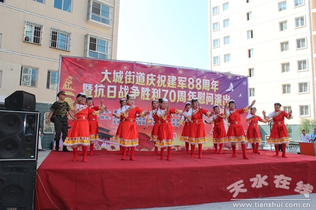 在中國(guó)人民解放軍88周年即將來(lái)臨之際暨抗戰(zhàn)勝利70周年。7月28日上午,大城街道辦事處隆重舉行軍民聯(lián)歡文藝演出,全體軍休人員歡聚一堂,載歌載舞,同慶“八一”建軍節(jié),共敘軍民魚(yú)水情。