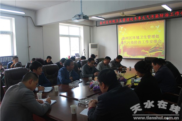 為認(rèn)真貫徹落實(shí)市、區(qū)有關(guān)2015年冬季大氣污染防治暨環(huán)境整治相關(guān)會(huì)議精神,10月26日上午,秦州區(qū)環(huán)衛(wèi)處召開今冬大氣污染防治工作安排會(huì),安排部署了環(huán)衛(wèi)處今冬大氣污染防治工作,處領(lǐng)導(dǎo)、各所隊(duì)負(fù)責(zé)人、督查全體共20余人參加了會(huì)議。