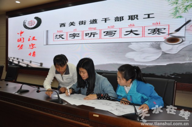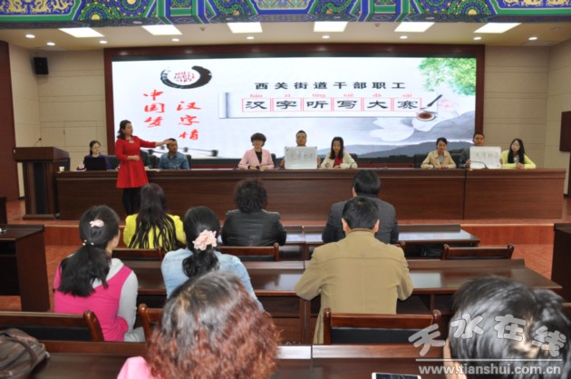 對(duì)于以漢語為母語的中國(guó)人來說,書寫漢字是一件從小學(xué)開始就會(huì)做的事情,然而“鍵盤時(shí)代”,漢字儼然成了“熟悉的陌生人”。為了改善干部職工長(zhǎng)期使用電腦造成的“提筆忘字”、“寫字不規(guī)范”問題,4月23日“世界讀書日”來臨之際,西關(guān)街道辦事處組織干部職工舉辦了一場(chǎng)別開生面的“中國(guó)夢(mèng)·漢字情”干部職工漢字聽寫大賽。