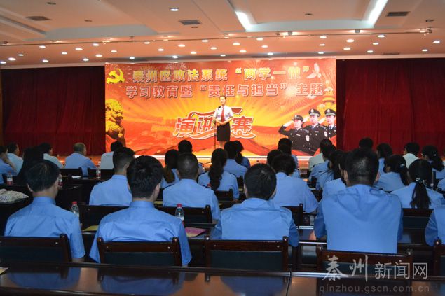 7月28日下午,秦州區(qū)政法系統(tǒng)“兩學(xué)一做”學(xué)習(xí)教育暨“責(zé)任與擔(dān)當(dāng)”主題演講比賽在區(qū)公安分局三樓會議室舉行。區(qū)委常委、政法委書記趙虎生,區(qū)政協(xié)副主席安雖奮,區(qū)法院院長王建明,區(qū)公安分局局長牛衛(wèi)忠出席演講比賽活動,區(qū)直政法各部門分管領(lǐng)導(dǎo)及全區(qū)政法干警110余人觀看演講比賽。