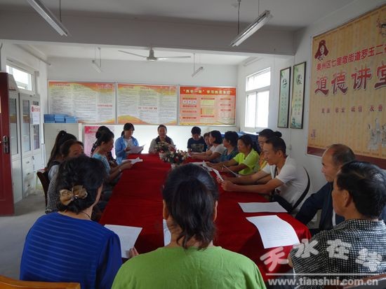 (七里墩街道羅玉二社區(qū)“兩學一做”學習教育專題交流研討會現(xiàn)場)