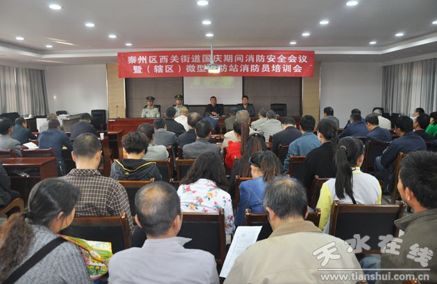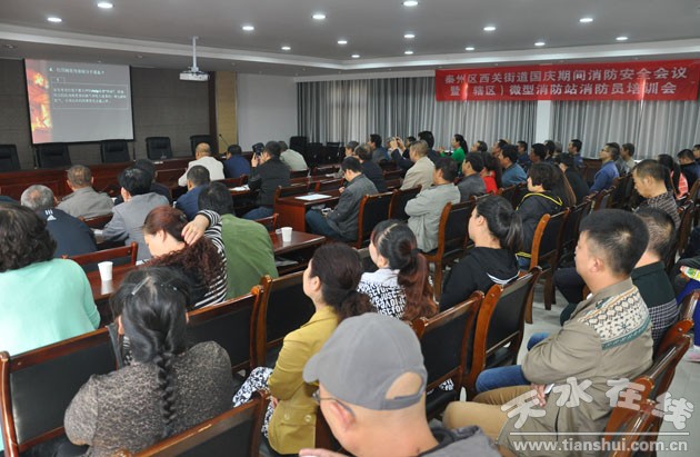 在國慶節(jié)來臨之際,西關(guān)街道聯(lián)合秦州區(qū)消防大隊(duì)開展了消防安全知識(shí)培訓(xùn)大會(huì)暨微型消防站消防員業(yè)務(wù)培訓(xùn)會(huì),轄區(qū)物業(yè)公司、居民代表、社區(qū)微型消防站人員等百余人參與了此次會(huì)議。