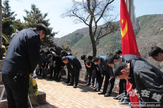 為緬懷革命先烈、弘揚(yáng)和培育烈士精神,繼承和發(fā)揚(yáng)優(yōu)秀革命傳統(tǒng)。4月1日上午,秦州國(guó)土分局黨委組織系統(tǒng)黨員干部職工共計(jì)30余人來(lái)到秦州區(qū)娘娘壩鎮(zhèn)張輝烈士陵,開(kāi)展清明祭掃活動(dòng)。