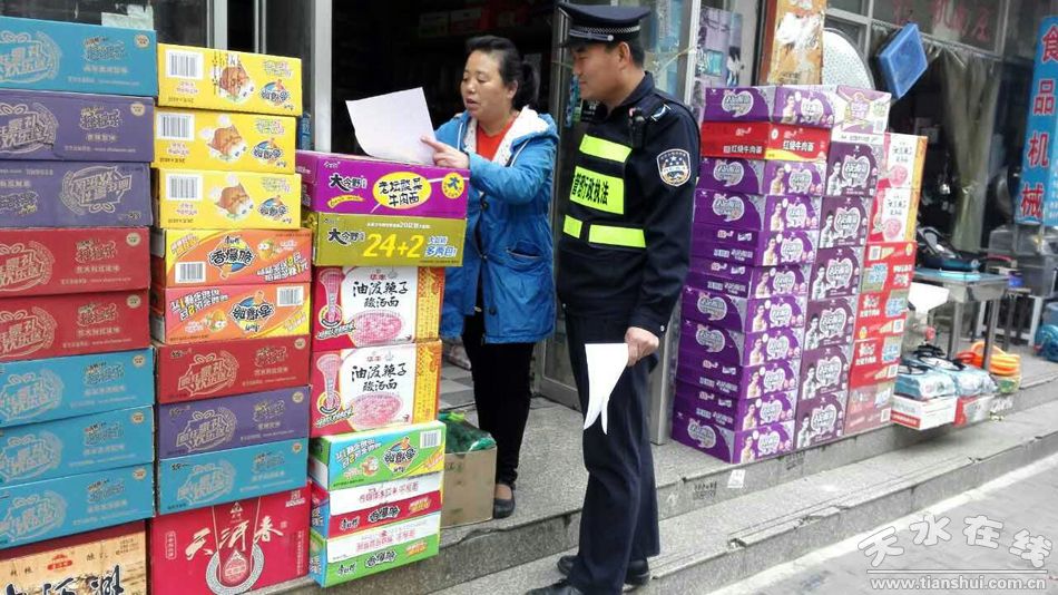 為了有效治理新華中、西路的店外經(jīng)營(yíng)現(xiàn)象,確保沿街整體的整潔和美觀,秦州區(qū)委選派后備干部城市管理工作組全體成員和區(qū)綜合執(zhí)法局中城中隊(duì)全體隊(duì)員在五一之前就對(duì)新華中西路的200多家商戶(hù)逐一進(jìn)行上門(mén)問(wèn)卷調(diào)查、宣傳城市管理的有關(guān)法律法規(guī),同時(shí)兩次逐一下達(dá)限期整改通知書(shū),為徹底解決店外經(jīng)營(yíng)打下了堅(jiān)實(shí)的基礎(chǔ)。