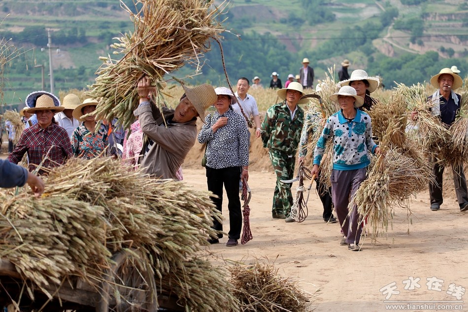 中梁地處秦州區(qū)北山,東接玉泉鎮(zhèn),南鄰太京鎮(zhèn),西與麥積區(qū)新陽鎮(zhèn)接壤,北與麥積區(qū)渭南鎮(zhèn)毗鄰,距市區(qū)11公里,因位于藉河和羅玉溝河中間的山梁上,故名為中梁,F(xiàn)有耕地面積46400畝,主要農(nóng)作物有小麥、玉米、洋芋、蕎麥等。六月的中梁鎮(zhèn),田間地頭一派豐收的景象,蔚藍(lán)的天空下,一壟壟麥田,一坡坡麥地,涌動(dòng)著一道道金色的麥浪。夏風(fēng)掠過,清甜的麥香味兒肆無忌憚地在空中飄蕩,彌漫在每個(gè)人的鼻尖。 “快來看!這兒的麥子正好著哩……”遠(yuǎn)處麥地里,一位村民熱情的朝我們揮著手,邀我們一起去田里割麥子。