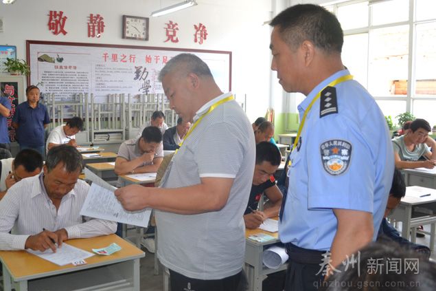 6月24日上午,秦州區(qū)委常委、政法委書記劉小平到天水市長(zhǎng)城中學(xué)巡視保安資格考試工作。