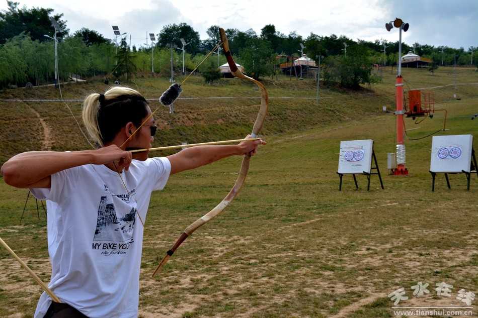 天水是中國歷史文化名城,亦是西漢名將李廣的故里。李廣長臂善射,其保家衛(wèi)國的高尚情懷被千古傳頌,也是中國式射箭的標(biāo)志性人物。在《史記·李將軍列傳》中就有“廣出獵,見草中石,以為虎而射之,中石沒鏃,視之,石也。因復(fù)更射之,終不能復(fù)入石矣!碧拼娙吮R綸的《塞下曲》“林暗草驚風(fēng),將軍夜引弓。 平明尋白羽,沒在石棱中!备由羁痰恼故玖死顝V鎮(zhèn)定自若、從容不迫、驍勇無敵的英姿。