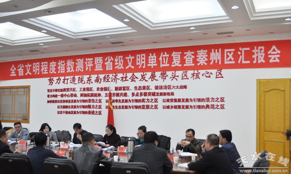 測(cè)評(píng)復(fù)查組利用兩天的時(shí)間,通過(guò)明察暗訪、聽(tīng)取匯報(bào)、查閱資料、問(wèn)卷調(diào)查的形式,對(duì)秦州區(qū)70多個(gè)實(shí)地測(cè)評(píng)點(diǎn)進(jìn)行了隨機(jī)抽查。并對(duì)中梁鎮(zhèn)、大城街道光明巷社區(qū)、天水市氣象局等各類省級(jí)文明單位進(jìn)行了復(fù)查驗(yàn)收。