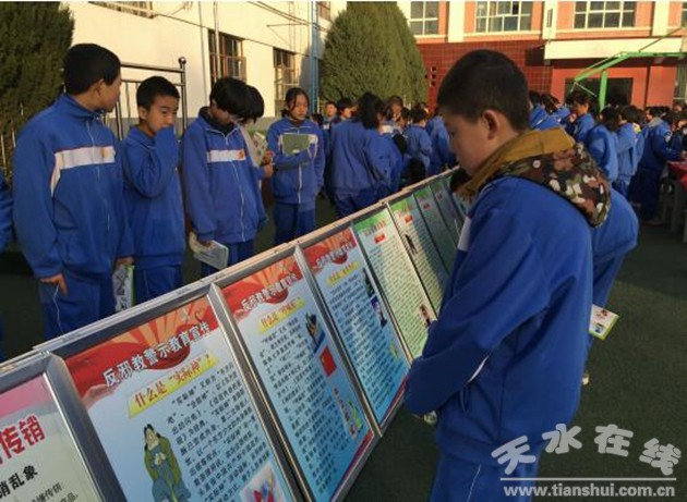 活動(dòng)現(xiàn)場(chǎng)采取懸掛橫幅、展板展覽、發(fā)放宣傳資料、簽訂承諾書等形式向廣大師生宣傳有關(guān)知識(shí)。在石馬坪中學(xué)操場(chǎng)上的懸掛著宣傳橫幅,40塊宣傳展板涉及禁毒、反邪教、安全、打擊傳銷、防電信詐騙等相關(guān)內(nèi)容,吸引眾多師生駐足觀看。同時(shí),同學(xué)們紛紛在承諾書上簽上自己的名字,并鄭重承諾:“珍愛生命、拒絕毒品、反對(duì)邪教、遠(yuǎn)離傳銷”。