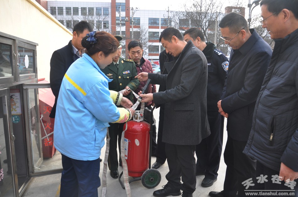 (秦州區(qū)外宣辦)12月29日,秦州區(qū)委常委、統(tǒng)戰(zhàn)部長王曉彤帶領區(qū)委督查室、區(qū)政府辦、安監(jiān)、公安、商務、運管以及消防大隊等部門負責同志開展2018年元旦前夕安全生產大檢查。