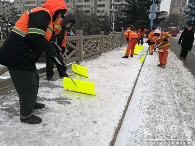 為保障廣大市民出行安全,維護城市道路整潔有序,秦州區(qū)環(huán)衛(wèi)局緊急購置鏟雪板500余副,動用儲備融雪劑10余噸,從1月4日凌晨開始,1300余名環(huán)衛(wèi)職工全員上崗,奮戰(zhàn)鏟冰除雪第一線。清理中,采取人工鏟雪清掃與拋撒融雪劑相結(jié)合的方式,對全區(qū)主次干道、人行道、廣場、步行街部、過街天橋等進行除雪,全力以赴清除城區(qū)路面積雪結(jié)冰,截止目前,已清除積雪25萬平方米。