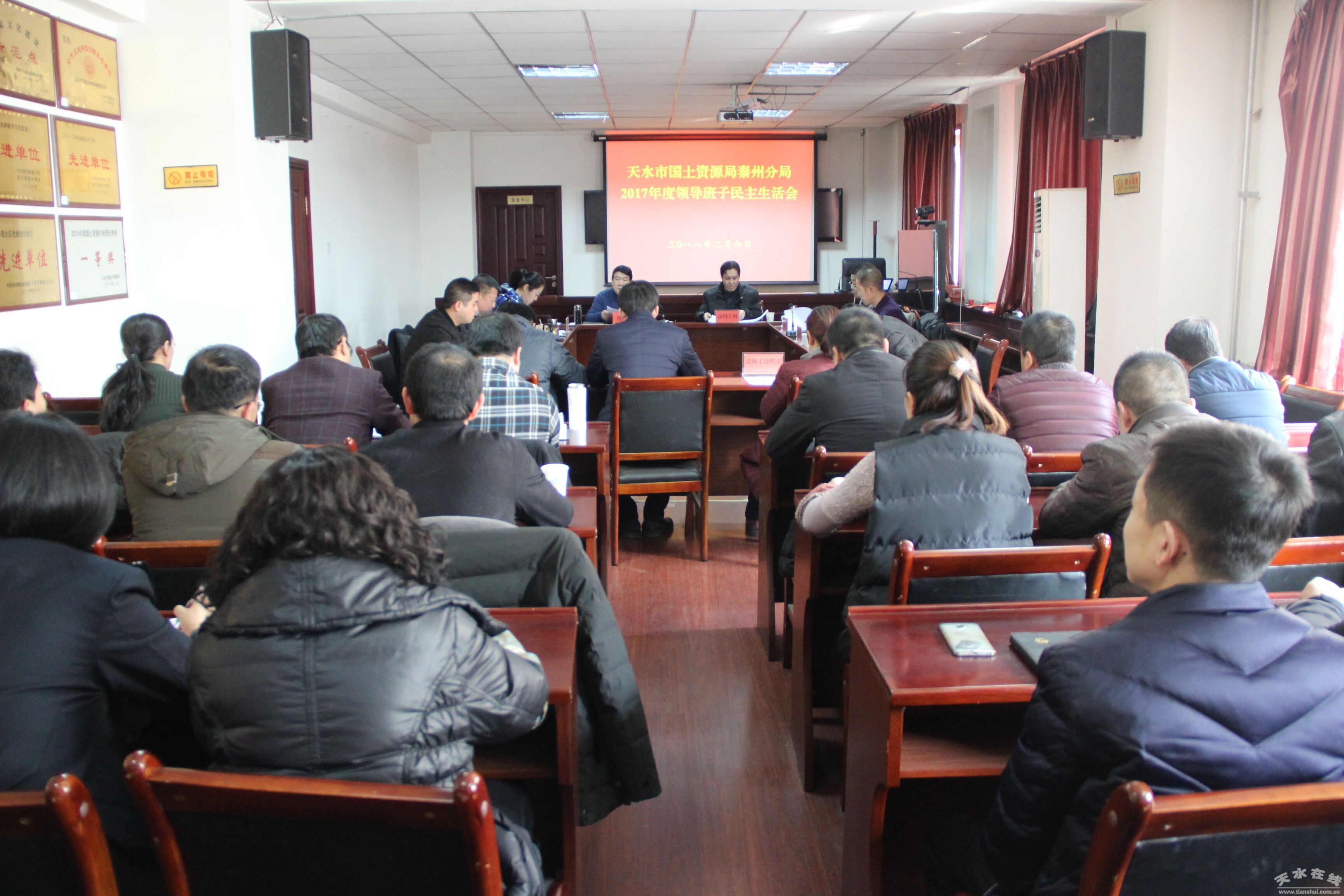 按照市國土資源局黨組和區(qū)委組織部安排,2018年2月6日,天水市國土資源局秦州分局組織召開2017年度領(lǐng)導(dǎo)班子民主生活會,局班子成員參加會議,局系統(tǒng)副科級干部、各支部書記列席會議。市國土資源局正科級紀(jì)檢員裴全忠、離退休干部代表蔣瑞麗同志出席指導(dǎo)會議。會議由局黨組書記、局長魏繼增同志主持。