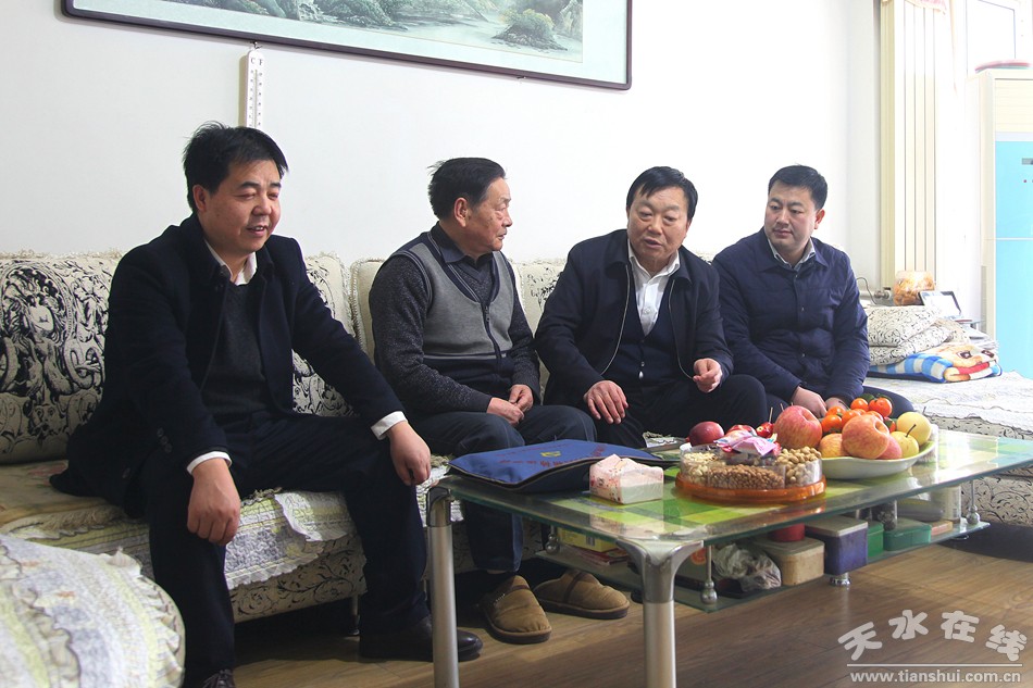 在老干部家中,宋丕林與他們親切交談,向他們表示慰問(wèn)。在詳細(xì)詢問(wèn)他們的生活、身體狀況后,宋丕林對(duì)他們?cè)谇刂莅l(fā)展中所付出的心血表示感謝,祝福他們新春快樂(lè)、全家幸福、身體健康,希望老同志今后繼續(xù)發(fā)揮余熱,關(guān)心助力秦州發(fā)展。