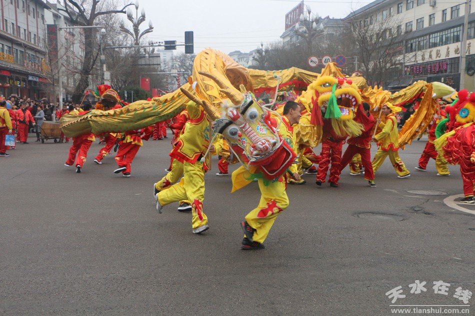 天水是中國歷史文化名城,歷史悠久,民風(fēng)純樸,民間非物質(zhì)文化遺產(chǎn)資源豐富,獨(dú)具地方文化色彩的春節(jié)文化活動節(jié)目更是形式多樣、精彩豐呈。近來年,秦州區(qū)在做好經(jīng)濟(jì)強(qiáng)區(qū)建設(shè)的同時,更加注重豐富人民群眾的精神文化生活,廣泛開展了群眾性文體娛樂活動,特別是春節(jié)文化節(jié)日活動更加豐富多彩。今年,區(qū)委、區(qū)政府組織相關(guān)文化部門對民間傳統(tǒng)藝術(shù)文化活動進(jìn)行發(fā)掘整理,組織群眾喜聞樂見的節(jié)目,由街道和鎮(zhèn)為演出組織單位,舞龍、舞獅、跑旱船、秧歌舞蹈、嗩吶夾板等民間節(jié)目在春節(jié)期間集中匯演。