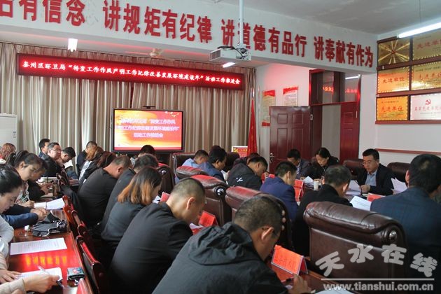 會(huì)上,傳達(dá)學(xué)習(xí)了省、市“轉(zhuǎn)變作風(fēng)改善發(fā)展環(huán)境建設(shè)年”活動(dòng)動(dòng)員大會(huì)精神;秦州區(qū)“轉(zhuǎn)變工作作風(fēng)嚴(yán)明工作紀(jì)律改善發(fā)展環(huán)境建設(shè)年”活動(dòng)工作會(huì)議精神;秦州區(qū)委辦《關(guān)于進(jìn)一步加強(qiáng)“轉(zhuǎn)變工作作風(fēng)嚴(yán)明工作紀(jì)律改善發(fā)展環(huán)境建設(shè)年”活動(dòng)的通知》文件精神。