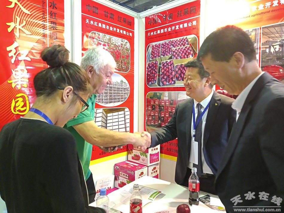 來(lái)自天水的優(yōu)質(zhì)蘋果受到了哈薩克斯坦當(dāng)?shù)乜蜕痰臍g迎,到展館參觀咨詢的人流不斷,向參展企業(yè)積極索要產(chǎn)品的介紹資料,多家當(dāng)?shù)乜蜕滔蛭覅^(qū)參展企業(yè)表達(dá)了合作意向。