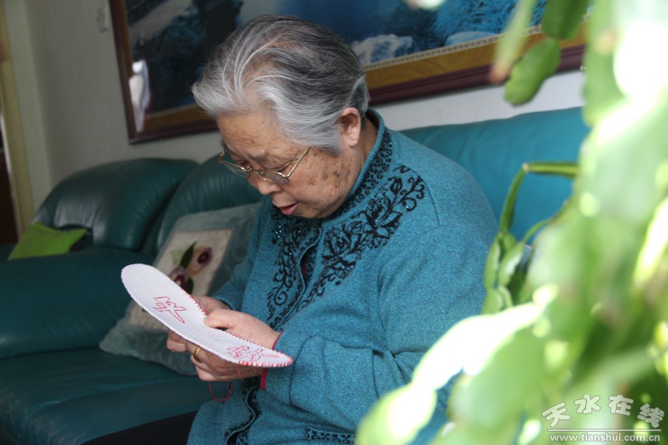 王秀芹老人的鞋墊一做就是近十年,而讓她對軍人有著特殊的感情機緣,還要從他的家庭說起。王秀芹老人的丈夫曾是抗美援朝的老兵,1982年,她隨丈夫轉(zhuǎn)業(yè)到了天水,她的兩個兒子也都曾在部隊服役過。他說:“我的老伴是,45年當兵,47年入黨,他曾抗過槍,吃過糠,跨過鴨綠江, 53年才從鴨綠江回來。在他的影響下我愛兵,愛解放軍,也愛消防戰(zhàn)士。”