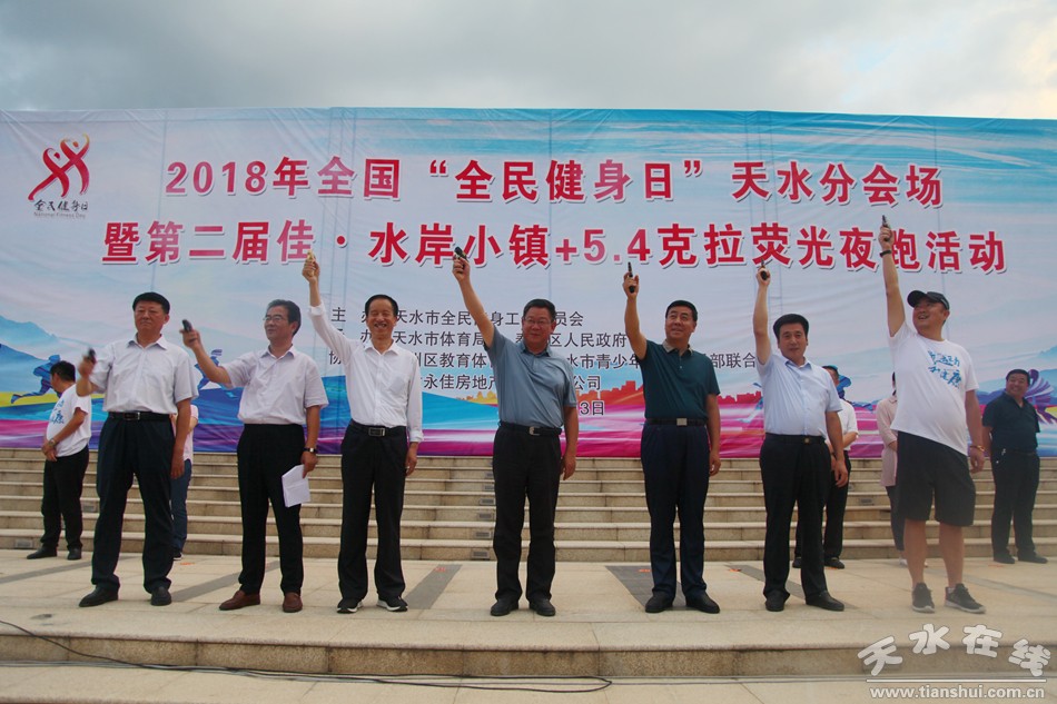 秦州區(qū)外宣辦8月3日訊(劉可)3日晚19時(shí)30分,2018年全國“全民健身日”天水分會(huì)場暨第二屆佳·水岸小鎮(zhèn)+5.4克拉熒光夜跑活動(dòng)發(fā)令儀式在藉河風(fēng)情線五里鋪段廣場舉行。市領(lǐng)導(dǎo)張建杰、逯克宗、蘇定武及主辦單位市體育局、秦州區(qū)人民政府,協(xié)辦單位佳·水岸小鎮(zhèn)相關(guān)負(fù)責(zé)人出席發(fā)令儀式。來自市內(nèi)外的2000余名夜跑選手參加了活動(dòng)。