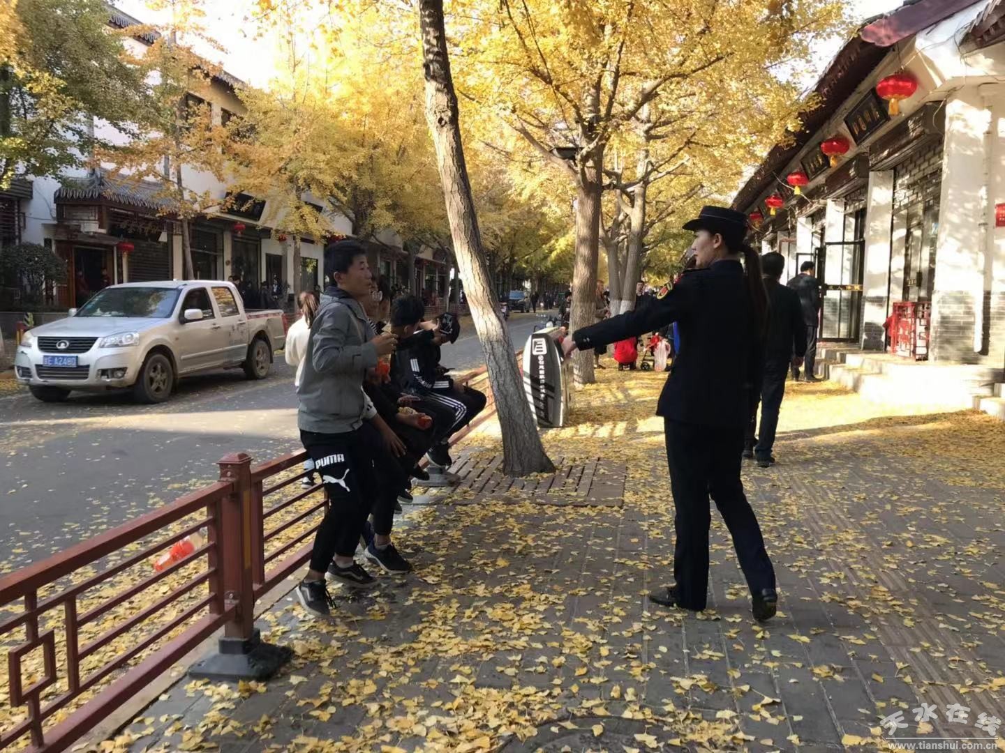 連日來(lái),位于秦州區(qū)青年北路的“黃金大道”再一次用滿目金黃贏得廣大市民和游客青睞。為了營(yíng)造一個(gè)干凈整潔、和諧有序的賞玩環(huán)境,秦州區(qū)執(zhí)法局早安排、早部署,充分發(fā)揮女子巡邏分隊(duì)耐心細(xì)致的柔性執(zhí)法優(yōu)勢(shì),定崗、定責(zé)、定人,依照市容管理精品示范街的高標(biāo)準(zhǔn),加大日常巡查管控力度,做到常抓不懈、嚴(yán)抓嚴(yán)管,全面落實(shí)門(mén)前三包責(zé)任,扎實(shí)推進(jìn)協(xié)作共建,督促沿街店面共同維護(hù)城市市容環(huán)境秩序,杜絕各類(lèi)影響市容環(huán)境問(wèn)題和不文明行為發(fā)生,讓整潔有序的市容環(huán)境與“黃金大道”與相互映襯。