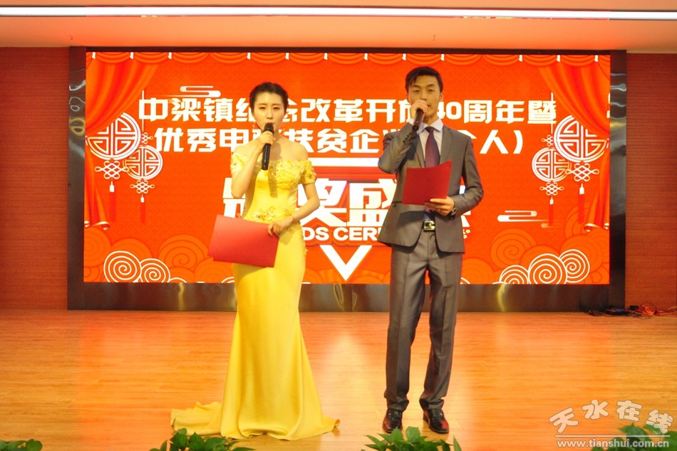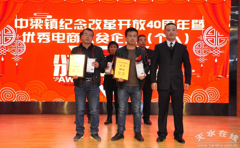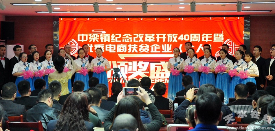 12月1日下午,中梁鎮(zhèn)舉辦慶祝改革開放40周年暨優(yōu)秀電商扶貧企業(yè)(個(gè)人)頒獎(jiǎng)典禮。全體鎮(zhèn)干部、村支部書記、優(yōu)秀電商扶貧企業(yè)及個(gè)人等共計(jì)110人參加,區(qū)扶貧辦、區(qū)商務(wù)局、中國移動(dòng)天水分公司等單位負(fù)責(zé)人參加典禮。