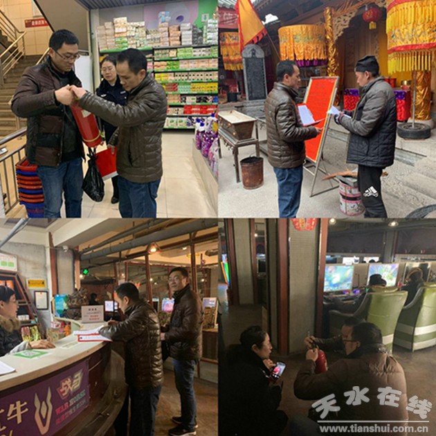 為進(jìn)一步貫徹落實(shí)秦州區(qū)2019年第一次安委會(huì)會(huì)議精神,推進(jìn)春節(jié)前轄區(qū)安全生產(chǎn)、應(yīng)急管理工作持續(xù)向好,確保轄區(qū)居民度過(guò)一個(gè)平安祥和的春節(jié)。1月29日至2月1日,秦州區(qū)西關(guān)街道黨工委、辦事處負(fù)責(zé)人、分管安全生產(chǎn)的武裝部長(zhǎng)帶隊(duì),街道安監(jiān)站、轄區(qū)派出所、工商所、食藥監(jiān)所、綜合執(zhí)法西關(guān)中隊(duì)組成的聯(lián)合執(zhí)法檢查組,深入到堅(jiān)家河市場(chǎng)、各商業(yè)門店、煙花爆竹售賣點(diǎn)、賓館、超市等人員密集場(chǎng)所開展消防安全、生產(chǎn)安全、食品安全大檢查。