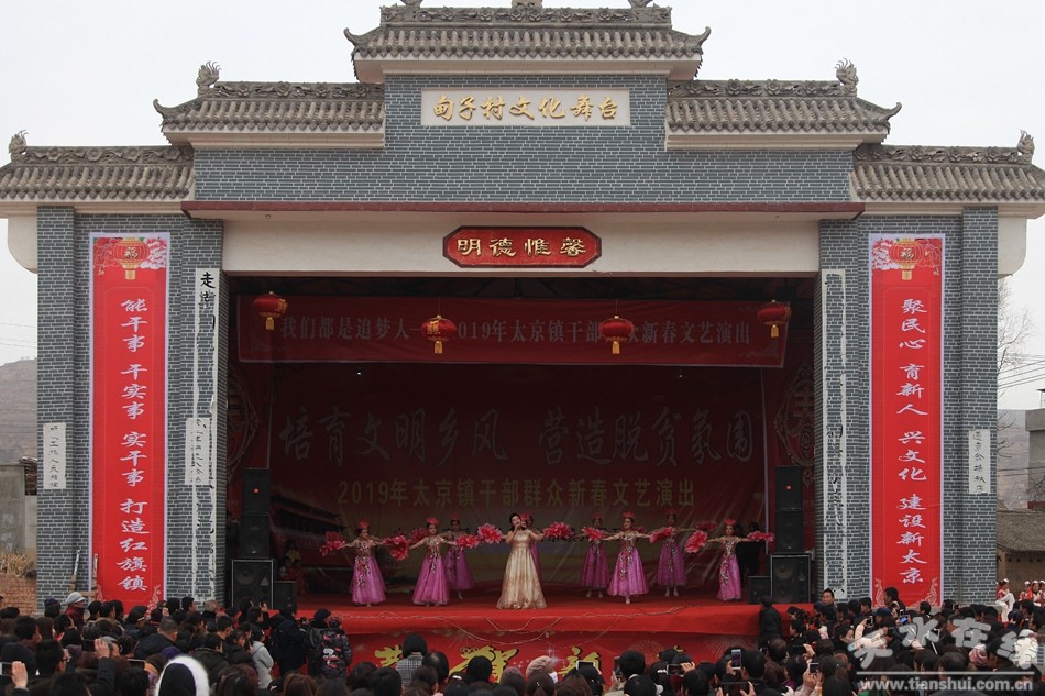 天水在線 秦州區(qū)外宣辦2月15日訊(劉可 張雅)14日下午,一場為“培育文明鄉(xiāng)風(fēng),營造脫貧氛圍”而舉辦的文藝匯演在秦州區(qū)太京鎮(zhèn)激情上演。本次文藝匯演以“我們都是追夢人”為主題,共演出各村和鎮(zhèn)屬單位選送的25個(gè)文藝節(jié)目。