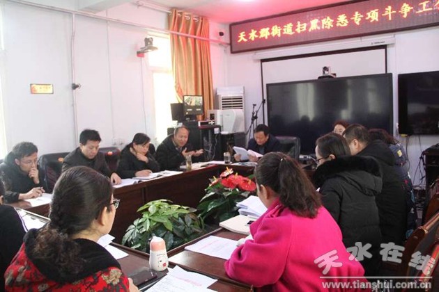 為了認真貫徹落實市、區(qū)掃黑除惡專項斗爭工作會議精神,統(tǒng)一黨員干部思想認識,迅速掀起掃黑除惡專項斗爭新高潮,2月20日下午,天水郡街道召開掃黑除惡專項斗爭工作推進會,街道班子成員、站所長、社區(qū)書記、綜治專干30余人參加了會議。