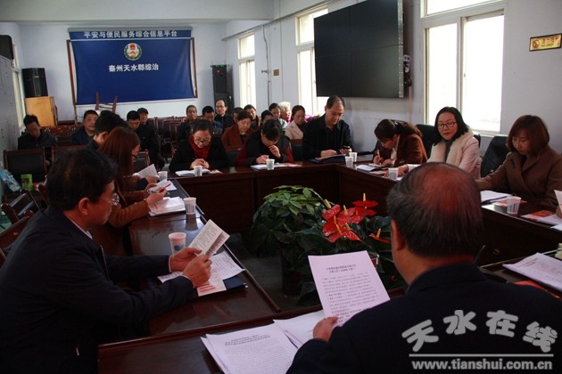 為迅速掀起學(xué)習(xí)宣傳貫徹習(xí)近平總書記在參加十三屆全國(guó)人大二次會(huì)議甘肅代表團(tuán)審議時(shí)的重要講話精神,進(jìn)一步統(tǒng)一人大代表思想認(rèn)識(shí),提高政治站位,提升人大代表依法履職能力,增強(qiáng)依法履職的積極性,正確行使好人大代表職權(quán),3月19日上午,天水郡街道人大工委組織轄區(qū)內(nèi)十余名人大代表開展集中學(xué)習(xí)培訓(xùn),會(huì)議由街道人大工委主任補(bǔ)天軍主持。