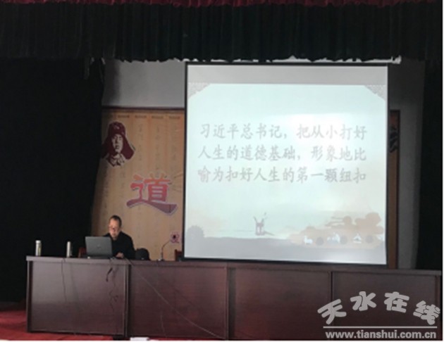 為更好的弘揚(yáng)中華傳統(tǒng)美德,促進(jìn)社區(qū)共駐共建,達(dá)到資源共享,3月27日,天水郡街道辦事處和天水市果樹(shù)研究所聯(lián)合舉辦“七彩講堂”之道德講堂在天水市果樹(shù)研究所禮堂開(kāi)講,本期講堂邀請(qǐng)?jiān)焖腥舜蟪N瘯?huì)副主任介滿盈主講,天水市果樹(shù)研究所黨委書(shū)記裴具田主持,天水郡街道部分班子成員、各社區(qū)書(shū)記及皂郊路社區(qū)全體干部共同參加本次講堂,總?cè)藬?shù)達(dá)130余人。