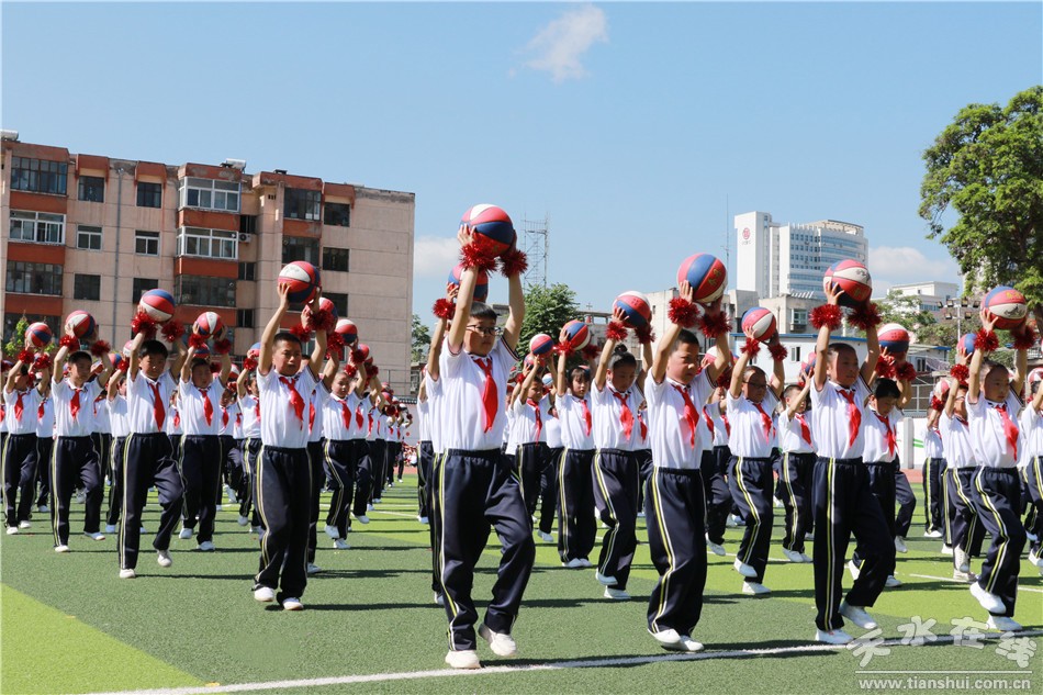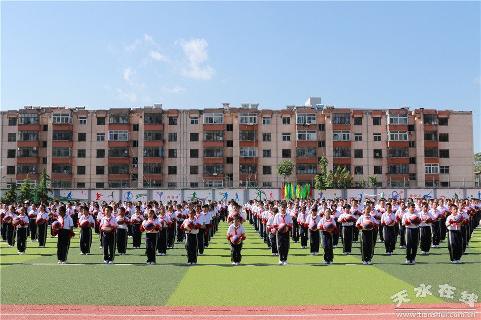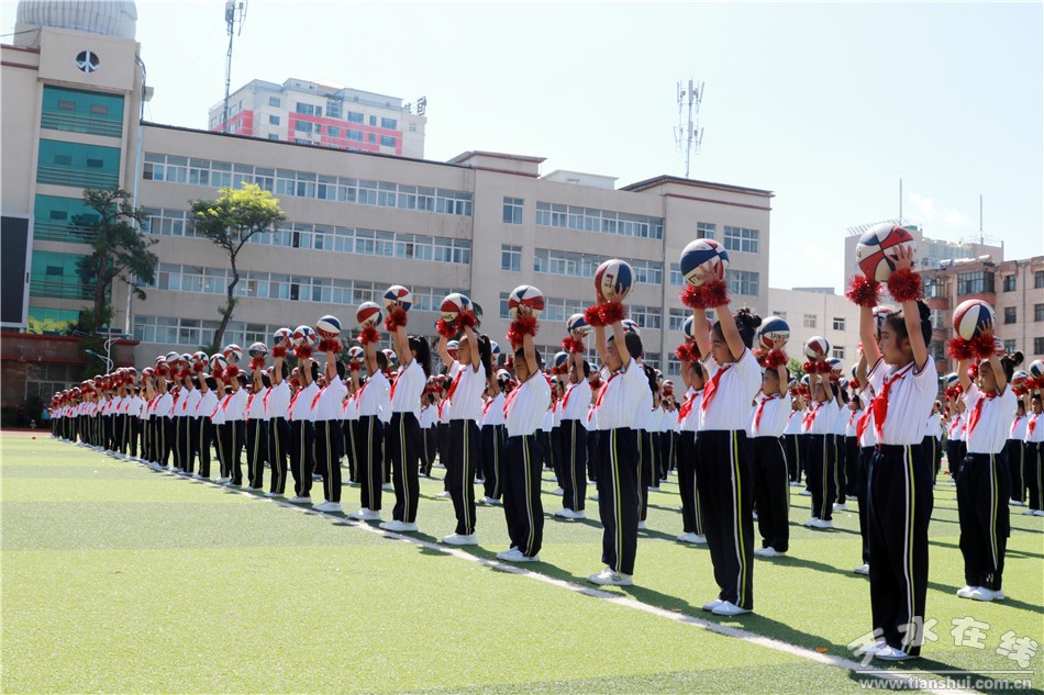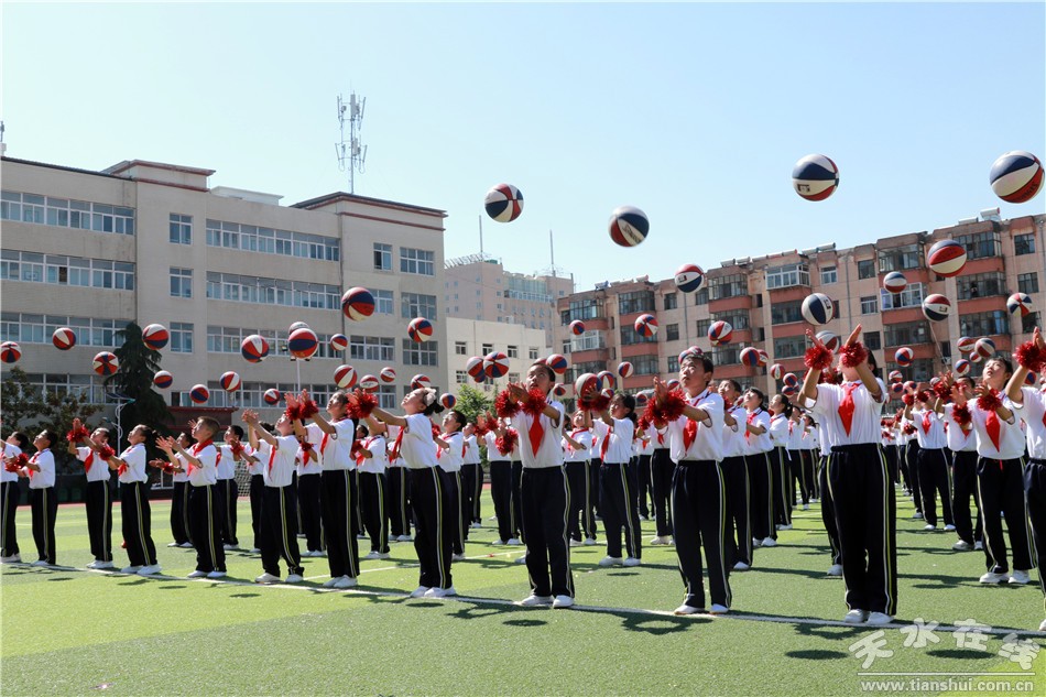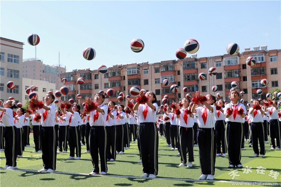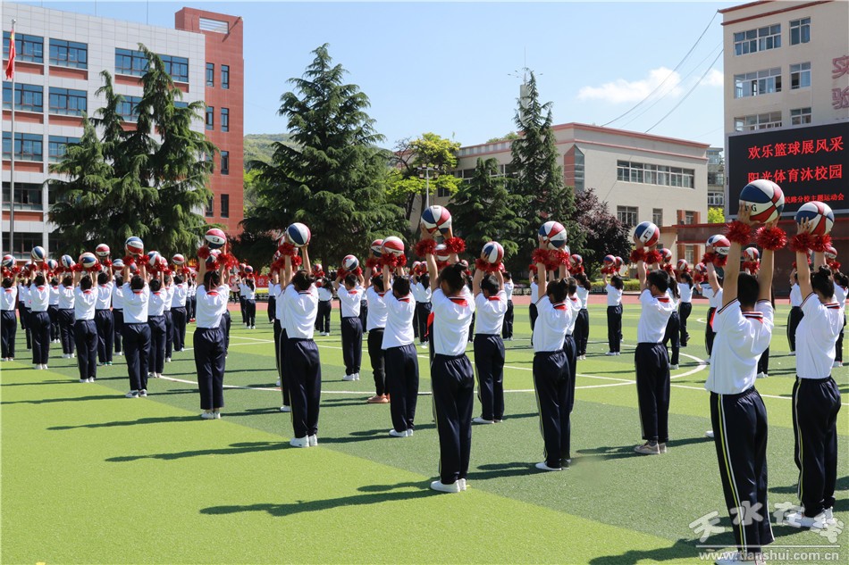 開幕式上,邀請甘肅工業(yè)職業(yè)技術(shù)學(xué)院國旗護(hù)衛(wèi)隊(duì)舉行了莊嚴(yán)的升旗儀式和倒功操表演。人民路小學(xué)進(jìn)行了千人花式籃球展演和年級(jí)組花式籃球比賽。在下午的競賽中,先后舉行了一分鐘拍球、五十米運(yùn)球跑、百發(fā)百中、二十米背對背夾球跑、定位投球、友誼賽等多項(xiàng)趣味活動(dòng)。